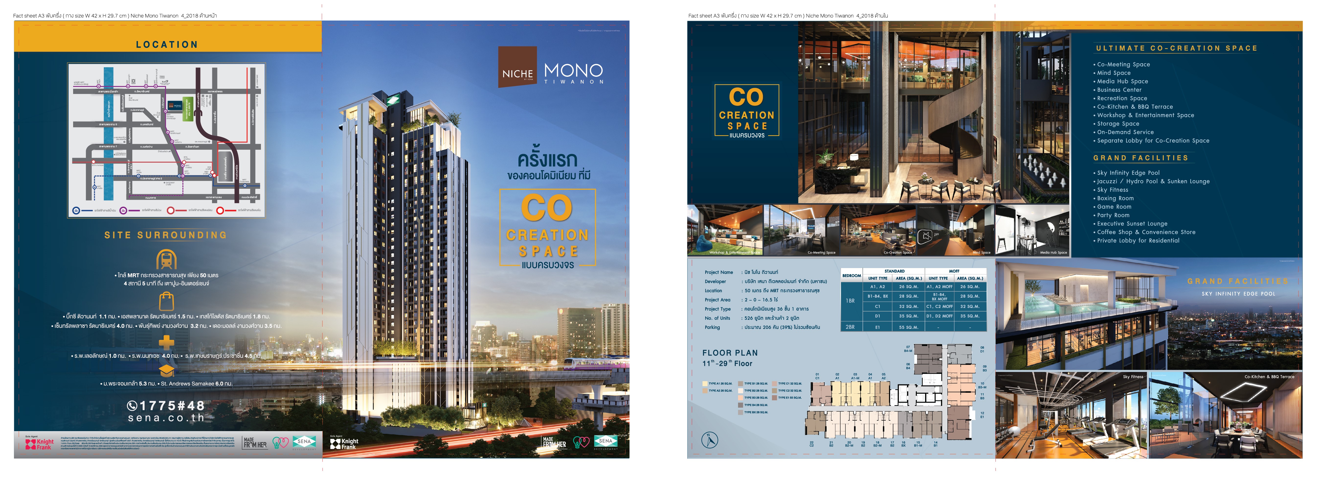 Niche Mono Tiwanon is located at Tiwanon Road, which is easily accessible. It is only 50 metres only to Ministry of Public Health MRT Station. This Bangkok Property sits within the upcoming new growth area. It is close to Bangsue Grand Station (Upcoming High Speed Rail terminal). Niche Mono Tiwanon is an ideal choice to be included in your Bangkok Property Investment portfolio. There are many amenities within the vicinity. The development is few minutes drive away from Pantip Plaza Ngamwongwan and Big C Tiwanon. There are also The Mall Ngamwongwan, Central Plaza Rattanathibet and Esplanade Ngamwongwan. Tesco Lotus Rattanathibet, Lelux Hospital, and Makut Rommayasaran Park is also just a stone throw away.